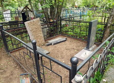 Первым делом мы принялись за демонтаж: сняли памятники с основания и поправили постаменты, надёжно укрепив их в земле. Таким образом мы избежали дальнейшего перекоса памятников и поставили оба надгробья на один уровень.