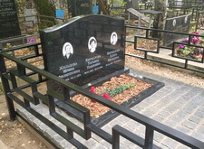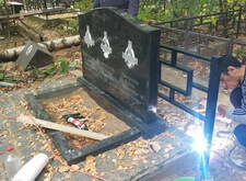 Приступаем к монтажу памятника. Привезли уже готовое надгробье, водрузили его на сделанное заранее основание, укрепили.