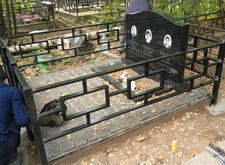 Для начала мы демонтировали уже имеющиеся элементы: снесли бетонный цоколь и изъяли стоящие кресты.