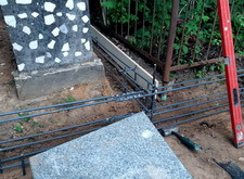 Затем мы приступили к подготовительному этапу установки ограды. Конструкция была объёмной, а потому было необходимо сначала сделать надёжный бетонный каркас. Мы выкопали траншею, а затем там, где это было необходимо, заколотили металлические сваи.