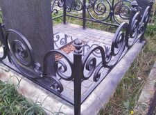 Клиент хотел остановиться на этом и покрасить ограду сам, но через некоторое время попросил сделать это нас. Полностью согласен с таким решением, поскольку среди тех могил, что лично я видел, данная ограда одна из сложных. А хорошо ее почистить и покрасить сможет не каждый. Посмотрите на ограду поближе.