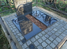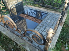 Мы уже занимались работами на этой могиле в прошлом году. Мы наносили гравировку портрета и сделали надпись. В этот раз мы сначала уложили брусчатку и надгробные плиты. Через несколько недель покрасили ограду, сделали покраску дешевле, как уже постоянному клиенту. Вот что нас встретило при первом посещении могилы, дело было весной. Работу начали через три недели.