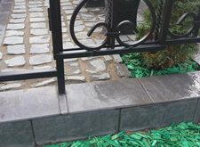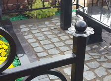 Покрасить ограду, так как чаще всего при установке ограды красят транспортировочной краской, которая приходит в негодность через год. Облицевать бетонный цоколь и бетон обрамляющий цветник. В данном случае для этого мы использовали керамогранит. Установили гранитные лавочку и столик. Посадили две туи и кустовые хризантемы в цветник. Заменили пластиковую вазу на гранитную. Уложили гранитную брусчатку на пол.