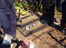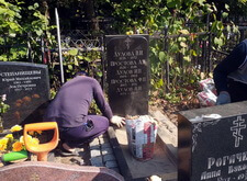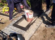 На данном объекте нам предстояло ровно установить покосившийся памятник, а вокруг цветника положить гранитную брусчатку.