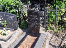 Небольшую могилу окаймляет гранитная брусчатка, что дополнительно придаёт месту захоронения ухоженный вид.