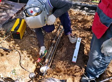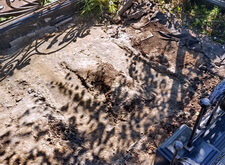 Первым делом мы приступаем к демонтажу объекта: разбираем основание, отодвигаем в сторону уцелевшие элементы надгробья.