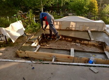 После сборки каркаса монтируем опалубку и заливаем её бетоном.