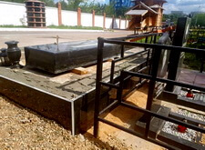 Первые две фотографии отражают состояние место захоронения. Так участок выглядел до проведения работ. Исходным материалом послужила заросшая травой территория, которая огорожена недоделанным бетонным цоколем, а также плита.