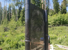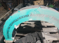 Далее начинается второй этап – переход к созданию элементов памятника. Первая подготовленная деталь – полукруглая арка. Трафарет на арку отпескоструили, сделали надпись сусальным серебром