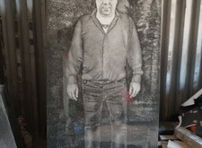 Проводим все те же действия на лицевой стороне памятника, на этот раз гравируем портрет умершего в кресле. Как и с ростовым изображением, лицо выбивается станком, остальное – ручная работа.