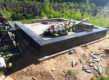 В одном из углов участка специально оставлена прямоугольная ниша. По периметру места захоронения залили опалубку, немного возвышающуюся над основанием.