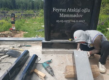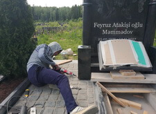 Снова возвращаемся к могиле. Устанавливаем подставку, на которой будет размещён памятник, цементируем.